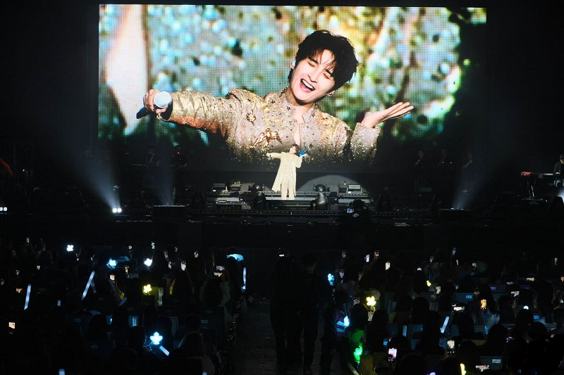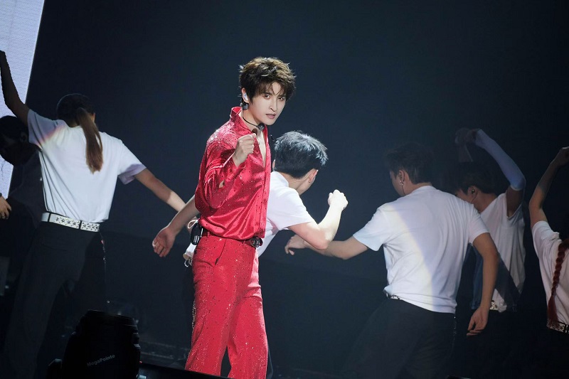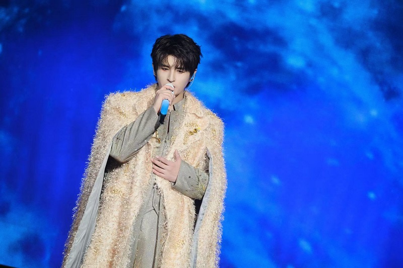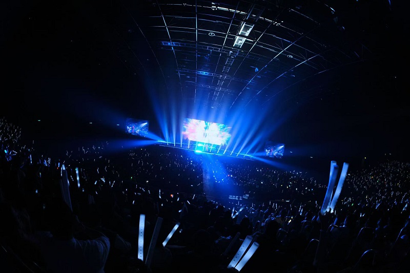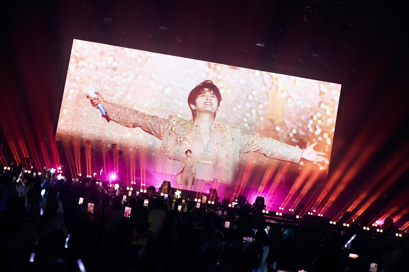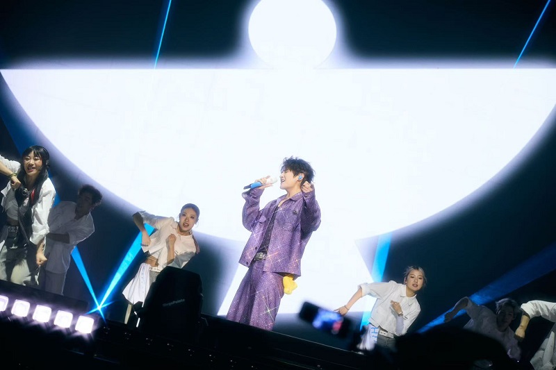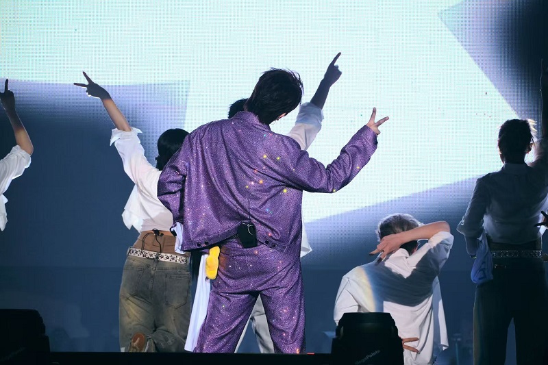 当晚21点,云顶世界的夜色被璀璨的灯光点亮。云星剧场里的荧光棒汇成耀眼的星海,全场观众热情高涨地欢呼着张远登场。随着聚光灯在观众入口处骤然亮起,身穿全套紫色镶钻西装的张远帅气现身,引得全场尖叫不已。