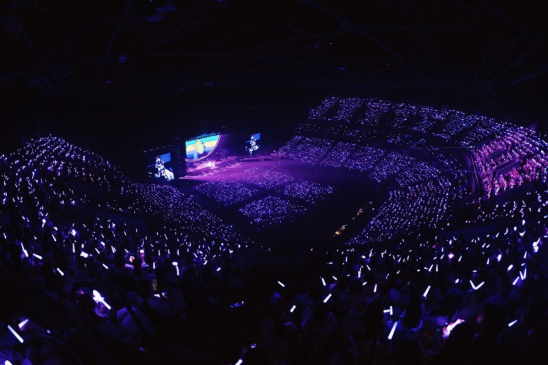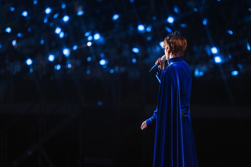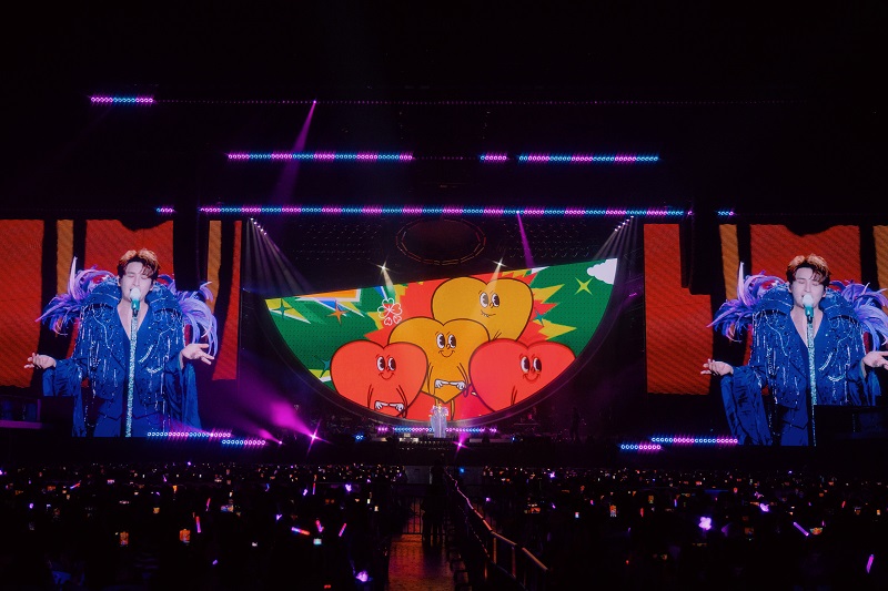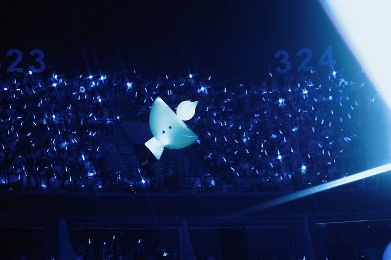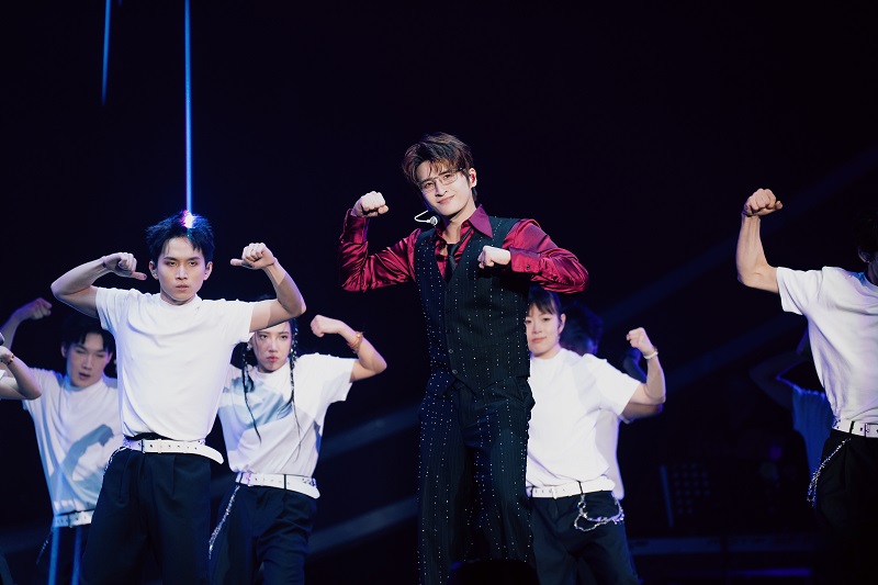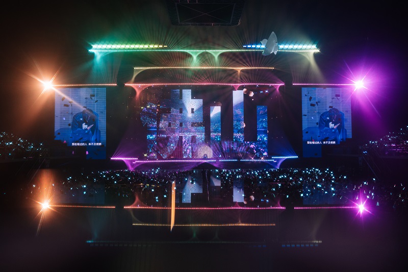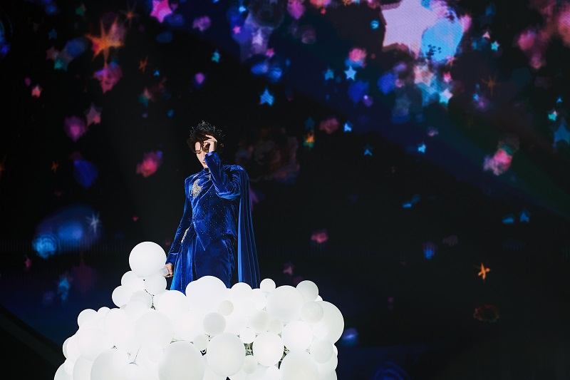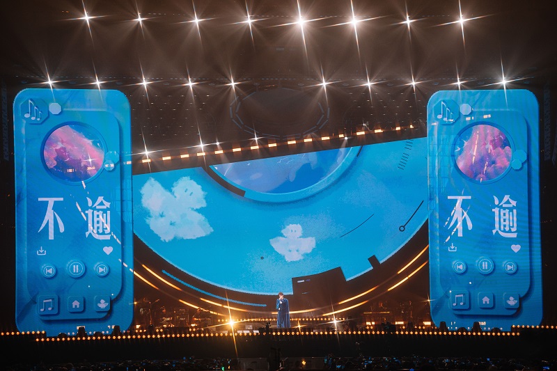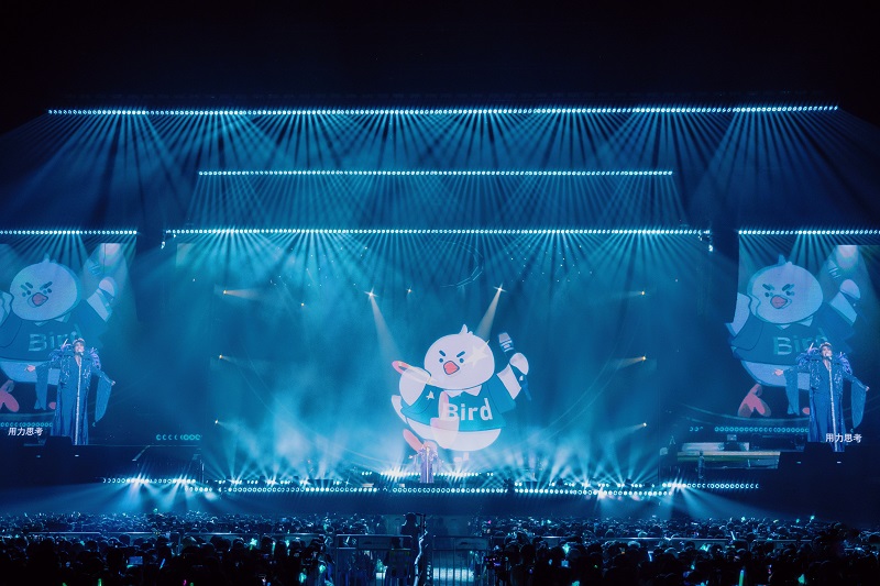 当身穿红蓝配色机车服的张远站立在洁白双翼前缓缓降落,恰如同款着装的奥特曼一般,潇洒飞翔,光芒万丈。当音符跳动至本场新增曲目「与你有关」,随张远同飞的还有七只彩色的飞鸟气模,活泼可爱,童趣十足。