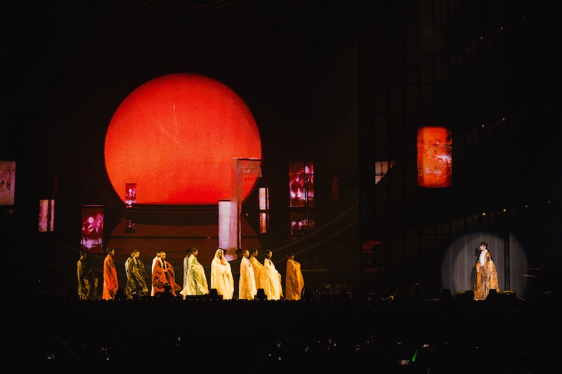 于是,从每一首歌的舞美、道具,到每一篇章的服饰、妆造,如:会随着歌迷爱意浓烈程度伸展互动的纯白双翅,所有舞蹈演员在「伶人」舞台上卸下面具穿着前十三场不同款式的长纱伴舞,以及黑色燕尾服上别致的玫瑰花胸针「绿茎」垂落于舞台上犹如汲取养分的设计......无一不展现出张远及整个主创团队对于「白」巡演主题的细节表达。